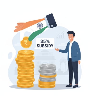 अगर आपका प्रोजेक्ट ₹10 लाख का है और आप ग्रामीण क्षेत्र की महिला हैं, तो आपको ₹3.5 लाख तक सरकारी सब्सिडी मिल सकती है।